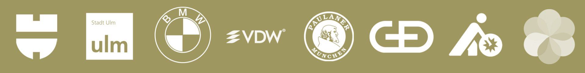 Audi, Astra, Apple, BMW, Paulaner, Tassimo, Senseo, König Pilsener, Giesecke und Devrient, Check24, ARD, Alpenhain, Gauloises, Leibniz, Fressnapf, Stadt Ulm, MVG, Gartenschau Pfaffenhofen, Bayerischer Rundfunk, SBK, NCL, MSD, VDW, Penguin-Verlag, Würth, Hoffmann Group, Telekom etc.